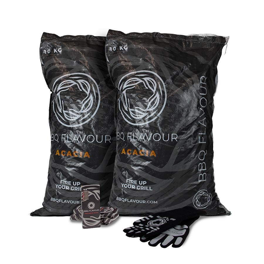 Dieses Set enthält zwei Säcke à 10 kg Akazien-Holzkohle. Hergestellt aus robustem Hartholz, bietet diese Holzkohle hervorragende Brenneigenschaften und eignet sich ideal für schnelle und intensive Zubereitungen. Die natürliche Holzkohle brennt gleichmäßig und kraftvoll, bei nur minimaler Rauchentwicklung.