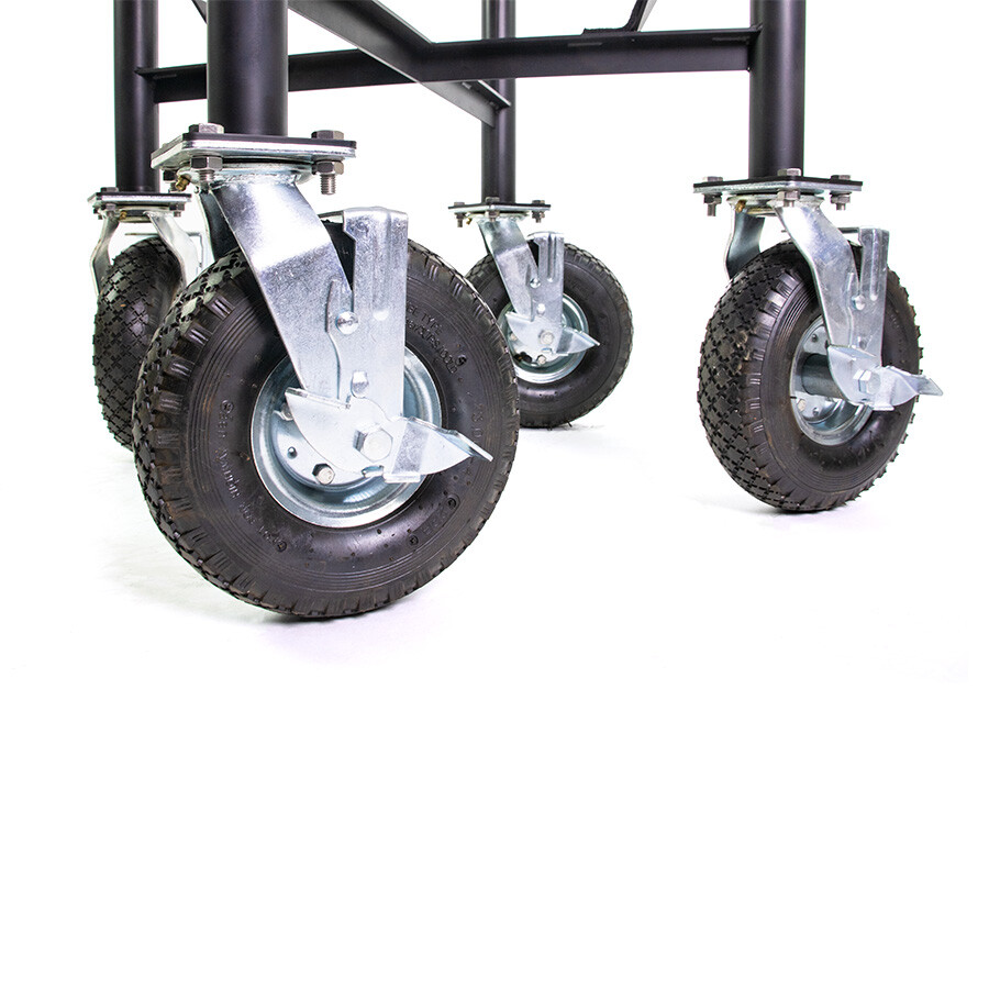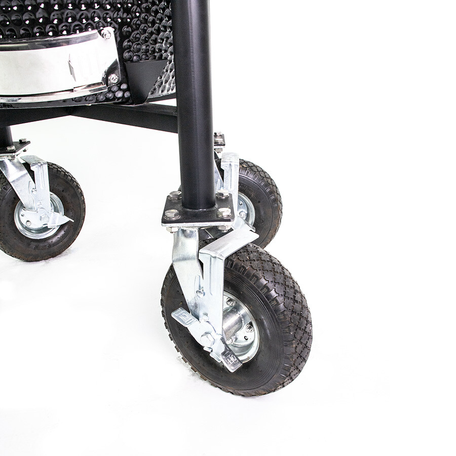 Dieses Allround-Fahrwerk ist für die wirklich harten Kerle, die sich weder von Schotterwegen noch von ein bisschen Sand aufhalten lassen. Mit dem Allround-Fahrgestell von YAKINIKU® können Sie Ihren LARGE-Kamado mühelos auch über die unwegsamsten Straßen transportieren. Sie können den Kamado, ohne das Tischnest, einfach in dieses Gehäuse stellen.