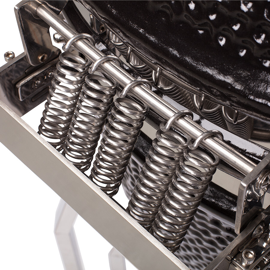 Der tragbare Kohlekorb macht den Kamado leicht zu reinigen. Dank des Zwischenstücks aus Edelstahl ist es auch einfach, die Hälfte Ihres Kamado zu verwenden.