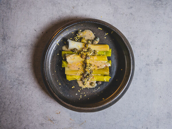 - Remove the leeks from the Kamado. Leave to cool for a few minutes. Remove the outer, charred leaves and further clean the leeks if necessary.