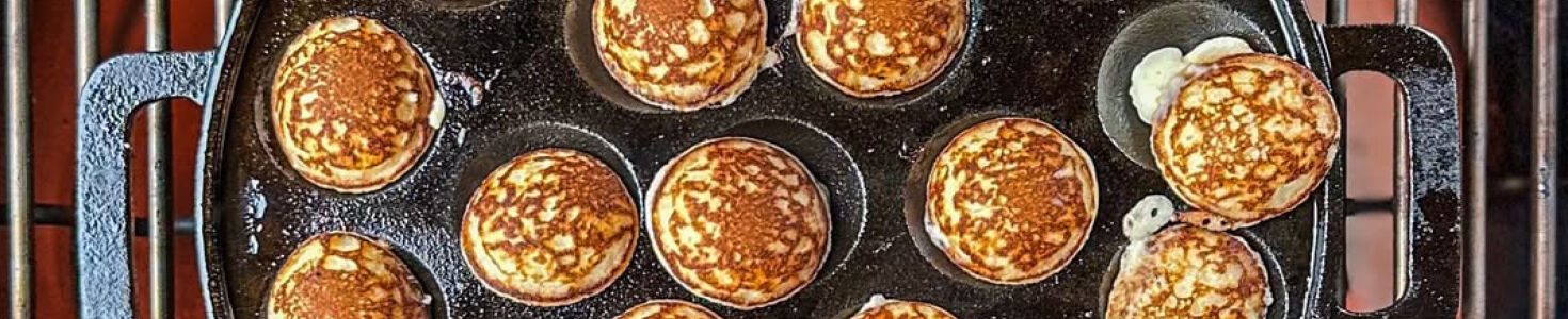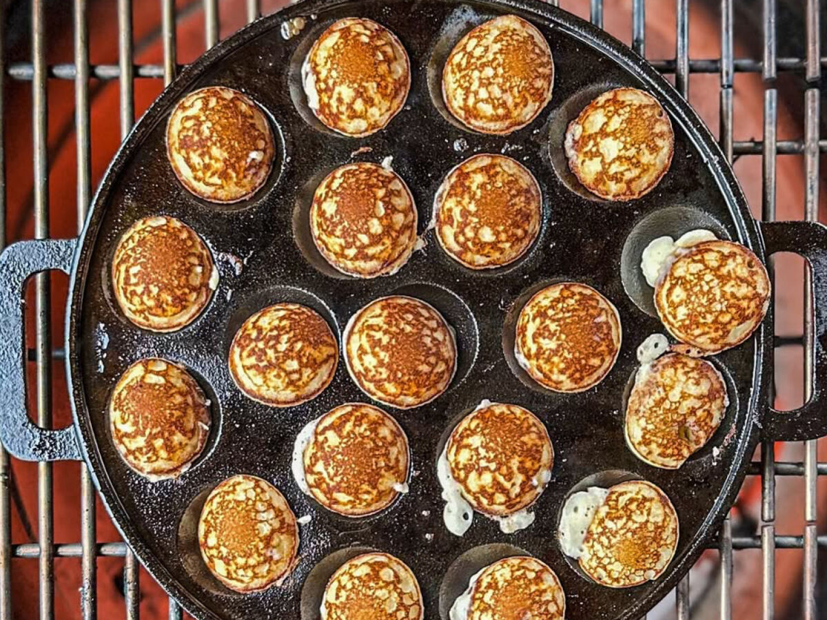 - Use a cast-iron poffertjes pan and place it on the grill.