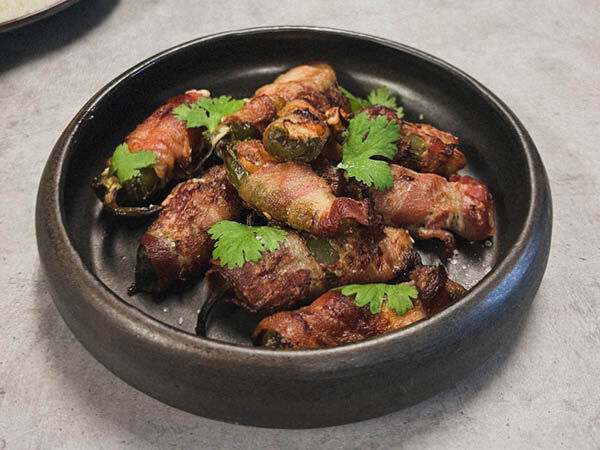 - Grill the poppers first on direct heat on the lower grid for 2 minutes, then continue cooking on the upper grid for 10 minutes until the bacon is golden brown.