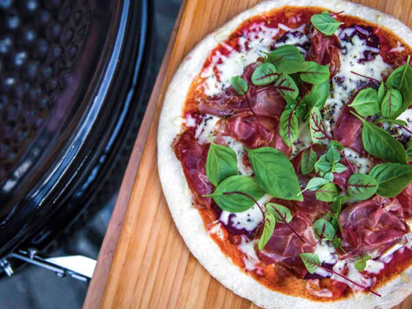 - Light a medium amount of charcoal and heat your Kamado to 300°C. Then place the pro set with a heat shield on the lower level and the pizza stone on the upper level.