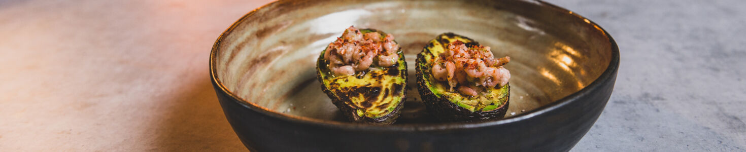 - Finally, serve the avocados in their skins with the prawns inside. Finish with some Japanese Smoked Salt and pul biber.