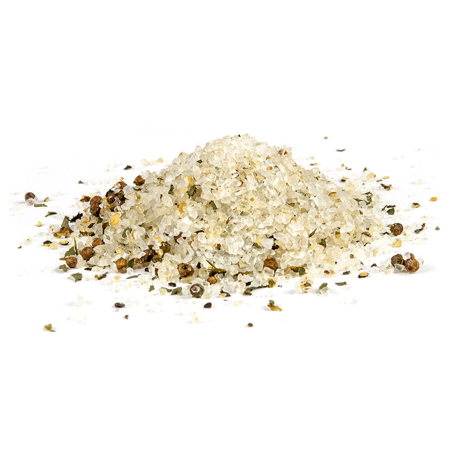 Ingredientes: sal; especias (pimienta, cilantro); hierbas (apio, levístico, ajo); verduras (cebolla, pimentón); aroma (aroma natural; agentes aromatizantes); aroma de humo. Puede contener trazas de cereales con gluten, crustáceos, huevos, pescado, cacahuetes, soja, leche, apio, mostaza, semillas de sésamo, dióxido de azufre y sulfitos. Conservar en lugar seco y a temperatura ambiente. Consumir preferentemente antes de: ver etiqueta.