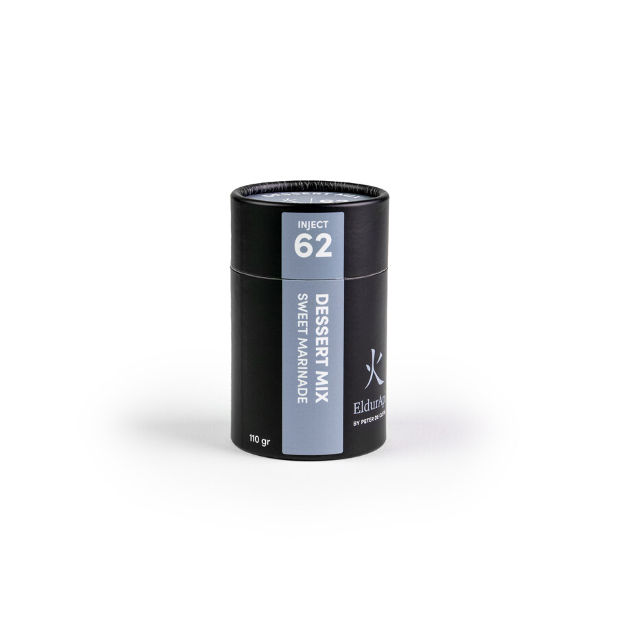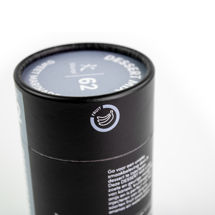 Disfrute de una experiencia de sabor única inyectando su postre. Esta mezcla para postres es una mezcla dulce y fragante de canela, clavo y anís y es perfecta para inyectar varias frutas como plátano, piña y sandía.