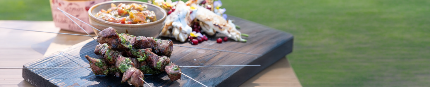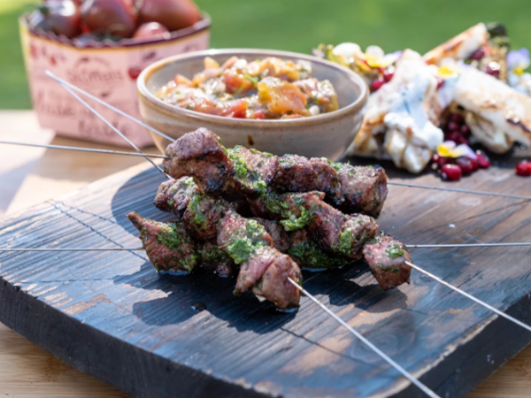 - Infilzare anche i cubetti di agnello, condire con sale e pepe e grigliarli sul barbecue.