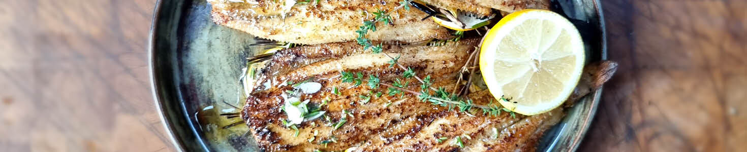 Maak de sliptongen schoon en marineer ze met de viskruiden en laat even rusten.